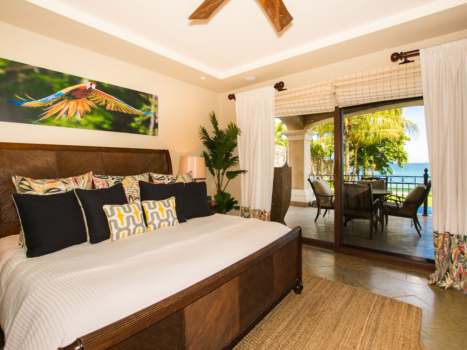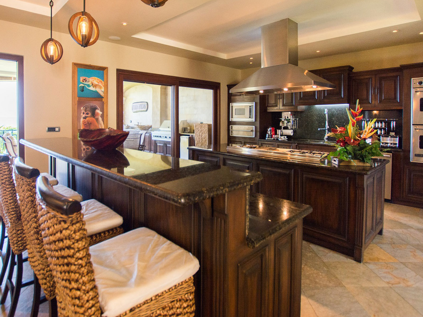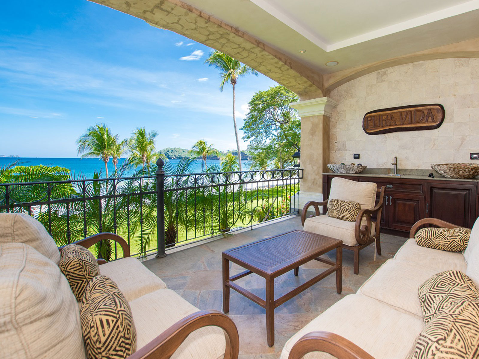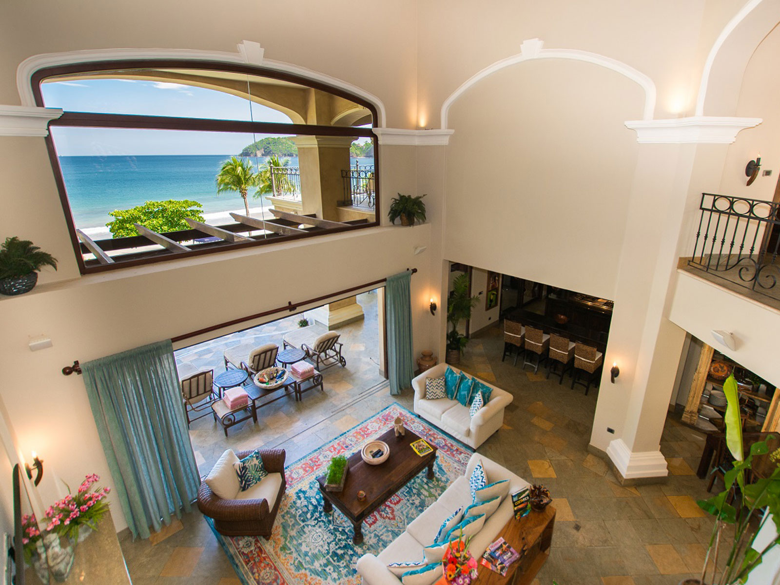 A beachfront home decorated throughout with striking photography depicting Costa Rican nature. Upon entering through the oversized, hand carved wooden doors, you will be greeted by the dramatic view of the beautiful Pacific Ocean. You can enjoy total privacy in their own living space, with unobstructed ocean views.